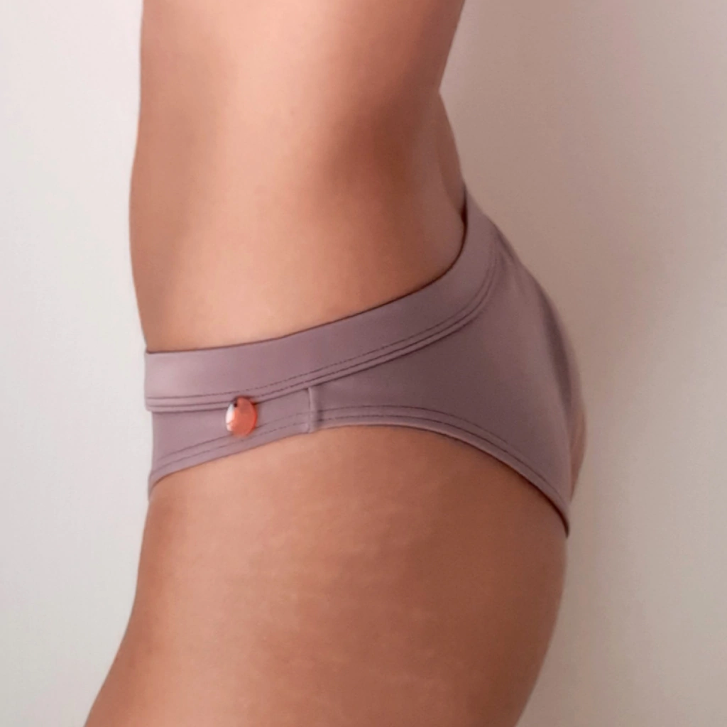 BOMBACHA VEDETINA TIRO BAJO DE LYCRA OPACA COLOR UVA.